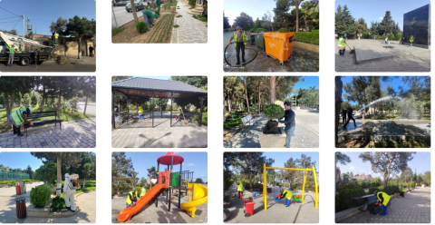 Eyni zamanda ərazidə mövcud olan çəmənlik və ağacların suvarılması, ağac və kollarda yaşıl budamanın aparılması işləri görülüb və toplanan məişət tullantıları müvafiq nəqliyyat vasitələri ilə ərazilərdən daşınıb.