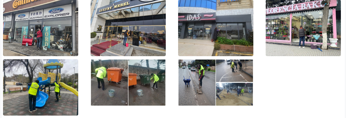 İməcilik zamanı prospekt və küçələr boyunca yerləşən ictimai iaşə, ticarət və digər obyektlərin vitrinləri, köşklər və avtobus dayanacaqları yuyulub, ətrafı təmizlənib. Eyni zamanda, kommunal xidmətlərin əməkdaşları tərəfindən yaşayış binalarında, həyət və yaşayış məhəllələrində, məişət tullantılarının atıldığı konteyner meydançalarının ətrafında əlavə təmizlik işləri görülüb.