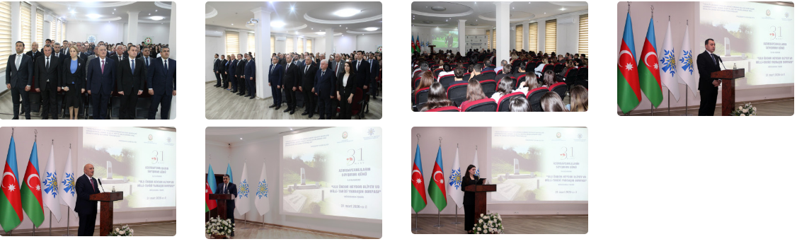 Azərbaycan Respublikasının Dövlət Himninin səsləndirilməsi ilə başlanan tədbirdə Ümummilli Lider Heydər Əliyevin və soyqırımı qurbanlarının, eləcə də şəhidlərimizin əziz xatirəsi bir dəqiqəlik sükutla yad edilib.