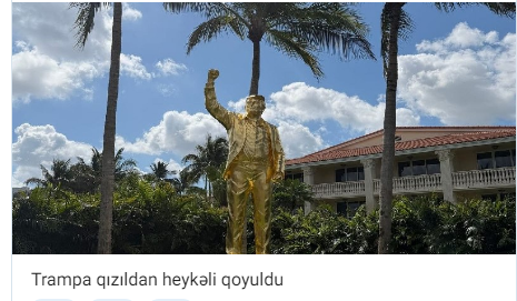 “Trump National Doral” qolf kurortunda ABŞ Prezidenti Donald Trampın qızılla örtülmüş bürünc heykəli qoyulub.