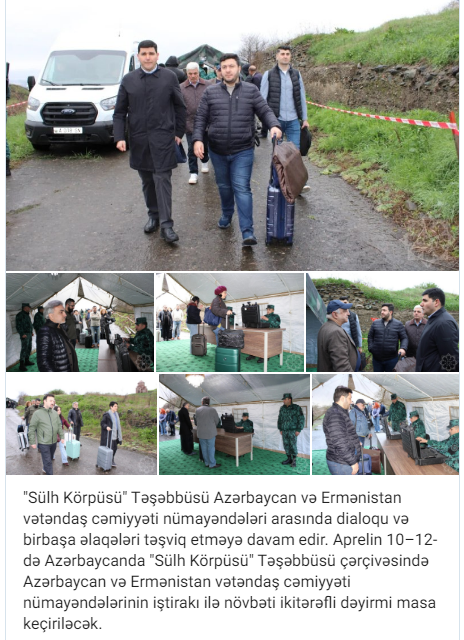 "Sülh Körpüsü" Təşəbbüsü Azərbaycan və Ermənistan vətəndaş cəmiyyəti nümayəndələri arasında dialoqu və birbaşa əlaqələri təşviq etməyə davam edir. Aprelin 10–12-də Azərbaycanda "Sülh Körpüsü" Təşəbbüsü çərçivəsində Azərbaycan və Ermənistan vətəndaş cəmiyyəti nümayəndələrinin iştirakı ilə növbəti ikitərəfli dəyirmi masa keçiriləcək.