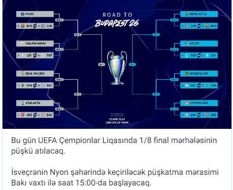 Qeyd edək ki, 1/8 final mərhələsinin ilk oyunları martın 10-11-də, cavab matçları isə 17-18-də keçiriləcək.