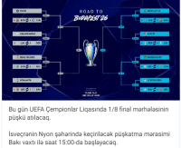 Bu gün UEFA Çempionlar Liqasında 1/8 final mərhələsinin püşkü atılacaq.