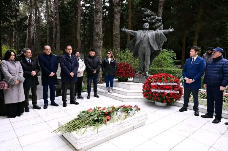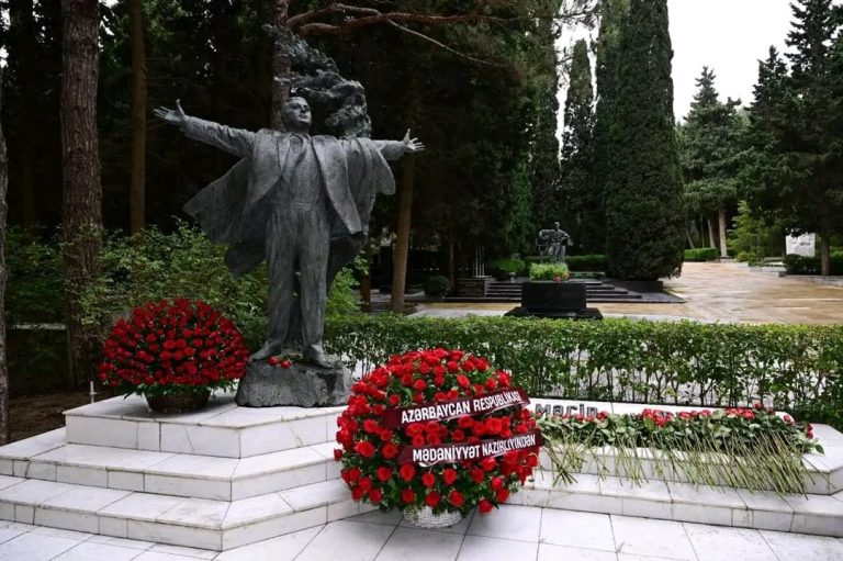 Rəşid Behbudovun 110 illiyi münasibətilə Fəxri Xiyabandakı məzarı ziyarət olunub