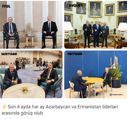 Son dörd ay ərzində Azərbaycan Prezidenti İlham Əliyev və Ermənistan Baş naziri Nikol Paşinyan arasında ardıcıl olaraq hər ay görüş baş tutub.