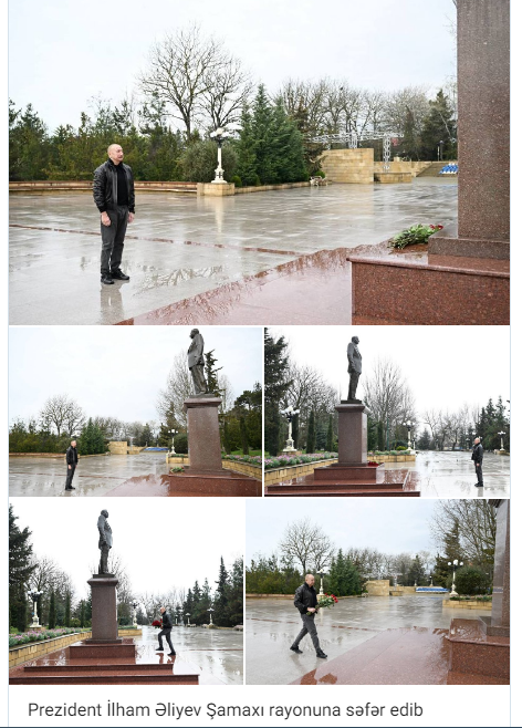 Qanunvehedef.az xəbər verir ki, dövlət başçısı xalqımızın Ümummilli Lideri Heydər Əliyevin Şamaxı şəhərinin mərkəzində ucaldılmış abidəsini ziyarət edib.