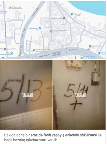 Qanunvehedef.az Baku.vs-yə istinadən xəbər verir ki, bu dəfə söküntü Nərimanov rayonunda - Dərnəgül bazarının arxasında yerləşən fərdi yaşayış evlərini əhatə edəcək.
